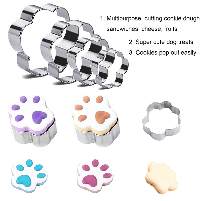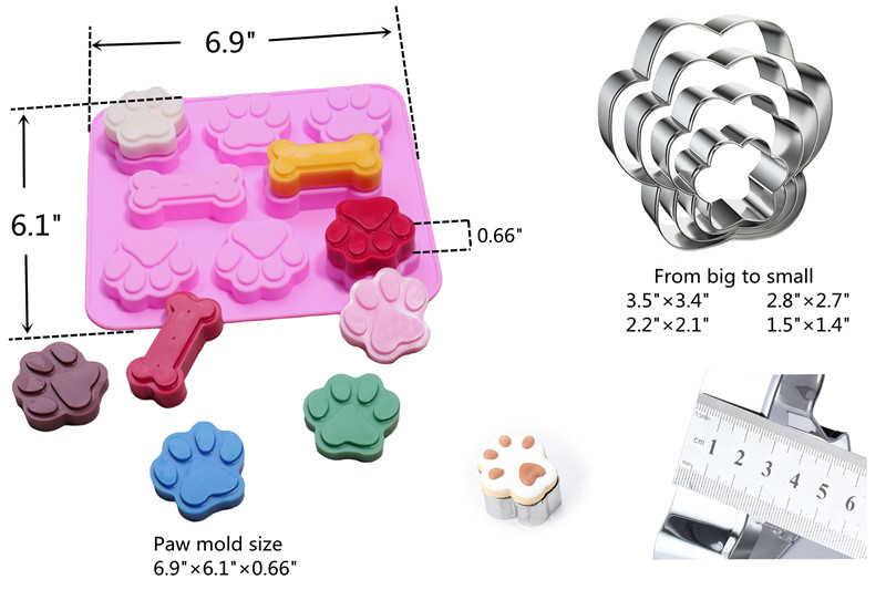 Package Details:2 X Paw Mold1 X Silicone dog Bone Mold4 X stainless steel dog paw biscuit mold