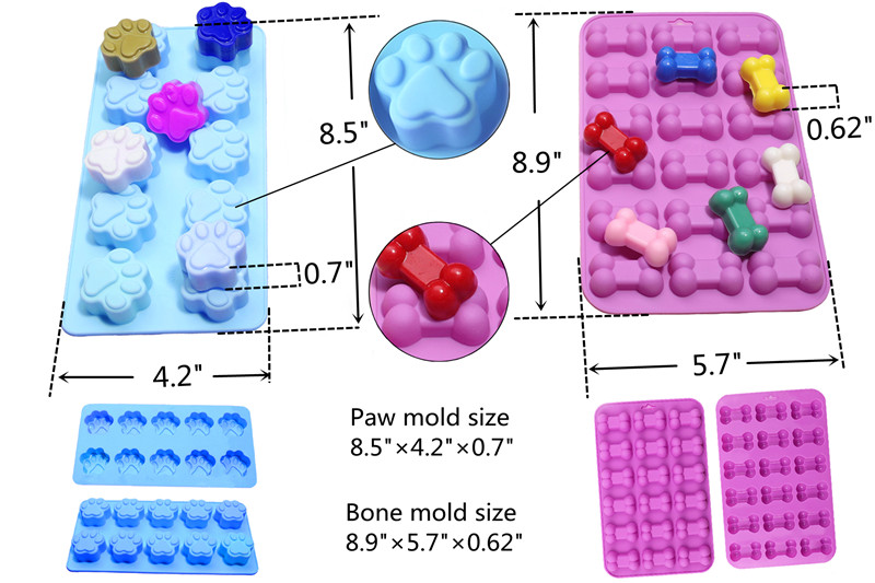 Classic Size:The 18 dog Bone tray measure 8.9” × 5.7” × 0.6”The 10 dog paw tray measures 8.5” × 4.2” × 0.65”The 8 dog paw tray measures 6.9” × 6.1” × 0.65”The paw cutter measures 3.5” × 3.4” × 0.98”